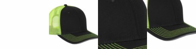 100% cotton twill two front panels; Soft mesh nylon back panels; Heavy enzyme wash; 6-panel; Unstructured; Low-profile; Two contrast color stripes on soft mesh side panels; Self fabric closure with silver sliding buckle and tuck in tunnel; Eyelets and button heavy raised contrast color stitching; Pre-curved visor ;