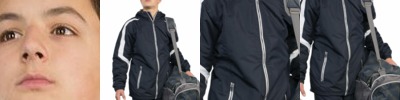 - Adjustable three-piece hood with eyelets and concealed cord locks