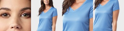 Solids are: 4.2 oz., 100% combed ring-spun cotton, 30 singles; Heathers are: 4.2 oz., 50% cotton and 50% polyester, 30 combed ring-spun singles; Dark Ash Heather Grey is: 4.2 oz., 90% cotton, 10% polyester blend, 30 combed ring-spun singles; Super-soft jersey; Generous body length; Deep v-neck; Made in USA;
