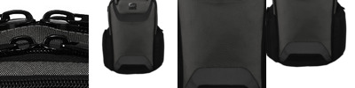 840D poly two-tone PU; 1,680D poly PU Spacious main compartment Easy-access padded laptop/tablet compartment Front fleece-lined front pocket for valuables and phone Interior organization panel with zippered front and key ring Fleece-lined front pocket for valuables and phone Exterior USB charging port Interior cord for charging Integrated padded luggage trolley pass through on back Zippered side pockets with fabric gussets for valuables and water bottles Ergonomic adjustable shoulder straps Padded back panel Reflective panels on front Dimensions: 19'h x 11'w (top) x 14'w (bottom) x 9'd Capacity: 1,586 cu. in./26 L Weight: 2.1 lbs./1.3 kgs Laptop sleeve: 16.5'h x 12'w; fits most 17' laptops Note: Bags not intended for use by children 12 and under.