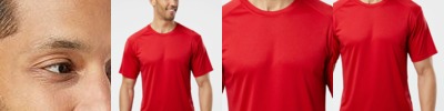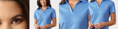 3.5 oz/yd2 / 130 gsm, 100% polyester interlock; Moisture-wicking and UV protection performance; Cationic dyes for superior brightness and color fastness; Three-button placket; Integrated collar stays; Dyed-to-match buttons; Tear away label;