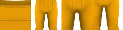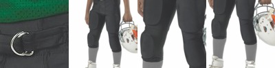 6 oz. 100% polyester; Elastic waistband with black drawcord; Faux fly; Knee piping; Back pocket; Side zipper pockets; Hem cuffs;