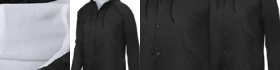 100% polyester nail head weave fabric ; Detachable hood with bungee cord and stopper; Invisible zipper inside chest for embroidery access ; Zippered handwarmer pockets; Modern fit;