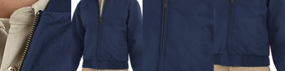 - Half elastic, half self-fabric cuffs and hem for comfort