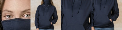 - 2-ply cotton gaiter sewn into neck seam with lycra binding at edge