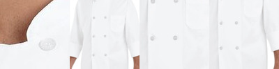 5.8 oz., 65% polyester, 35% cotton; hard-wearing and durable chef's jacket; Double Pen pocket on left sleeve; Soft hand feel; Mandarin collar stand with topstitching; Ten press stud front fasteners; Oeko-Tex® Standard 100 certified; WRAP certified;