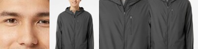 100% nylon shell, 100% polyester lining; Water resistant; Reinforced slant front welt pockets; Raglan sleeves with 1x1 rib cuff opening; Dyed-to-match exposed coil zipper with metal pull;