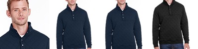 7.5 oz., 55% cotton, 39% polyester, 6% rayon triblend fleece; 1/4-zip placket with off-white zipper tape; Rib collar, cuffs, and waist; Welt pockets;