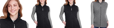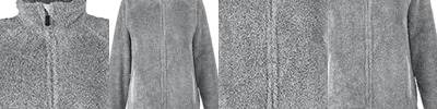 10 oz., 70% polyester 30% quilted jersey; polyester filling; full front zippered placket; drop shoulder; princess seams and side pockets;