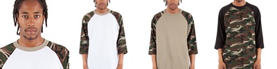 SHRAGCM Adult Three-Quarter Sleeve Camo Raglan T-Shirt