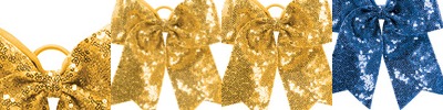 Sequin glitter bow with twill backing; 3" x 7.5" with 5.5" tail; 1" elastic hairband;