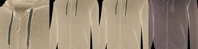 7.5 oz., 100% polyester multicolored shag; Unconcealed nylon zipper; Stand-up self-collar; Sideseam welt pockets; Single needle stitched throughout; Tear away label;