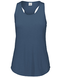 3.8 oz., 50% polyester/38% cotton/12% rayon tri-blend knit; Ladies' fit; Fits loose to body; Tear away label; Scoop neck; Racerback with keyhole; Contoured bottom;