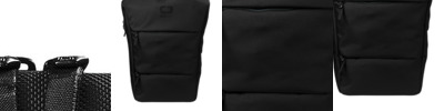 - Padded sleeve safely stores a laptop
