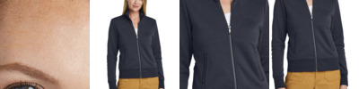 A structured double-knit style with a luxuriously soft hand, this versatile woman's jacket adds a touch of utilitarian flair with a full button-front closure. The jacket can be cinched with a hidden waist drawcord for a more form-fitting look.